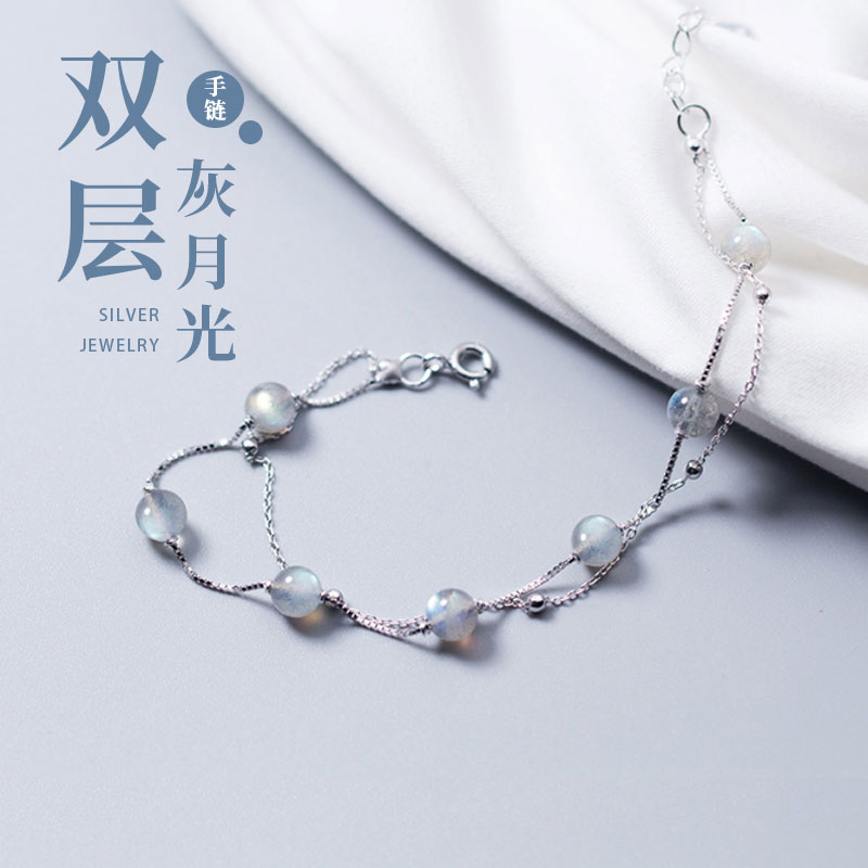 Cat sting s925 sterling silver forest gray moonstone multi-layer bracelet female Korean version simple student best friend small fresh and versatile