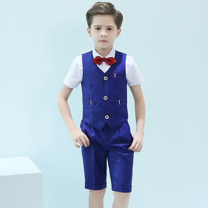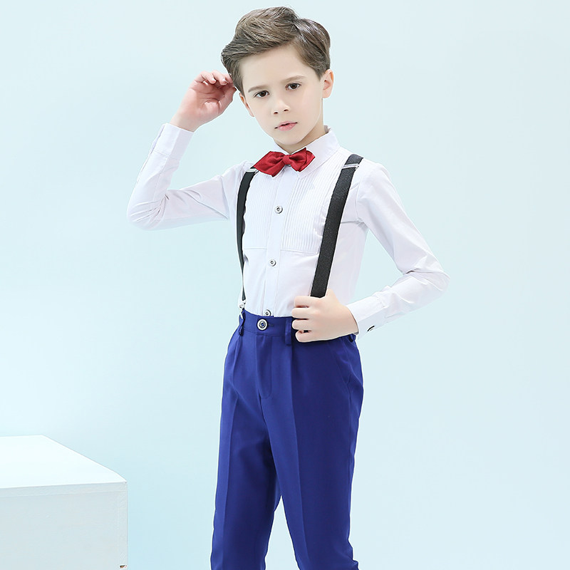 Deep blue -1 (white short sleeve shorts black holding baby bag wine red sharp corner collar tie) dark blue -2 (white long sleeve long pants black hugging bag wine red sharp corner collars) Deep Blue -4 (Machia white long