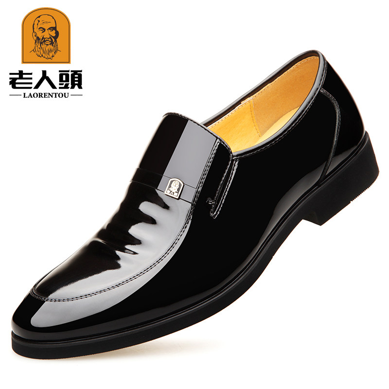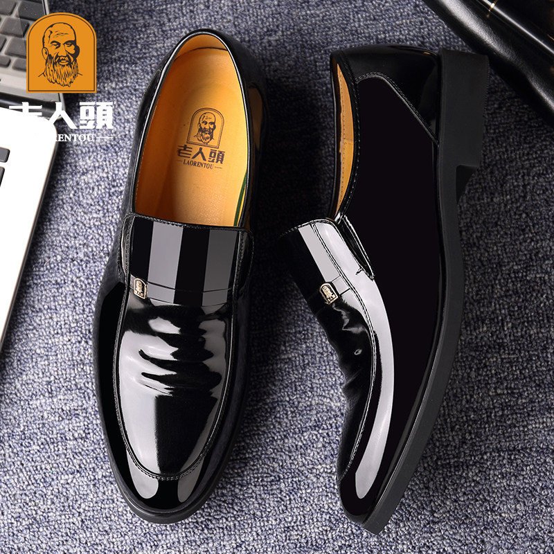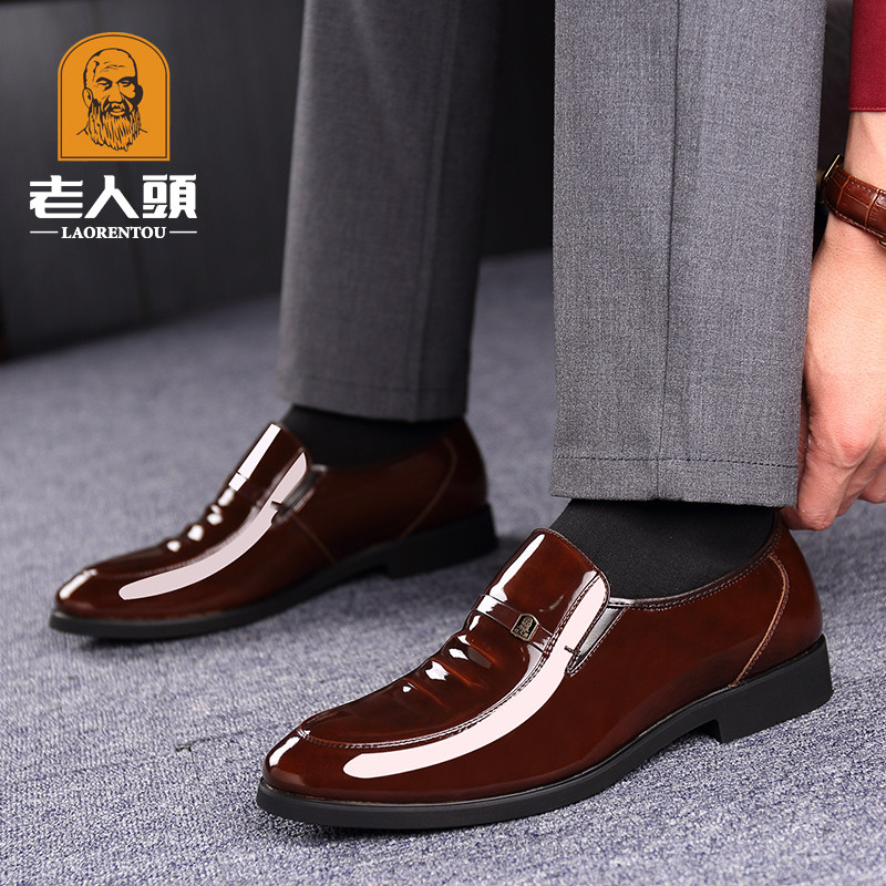 Old man's head men's shoes autumn business dress leather shoes men's genuine leather inner heightened British Korean style pointed toe bright leather wedding shoes