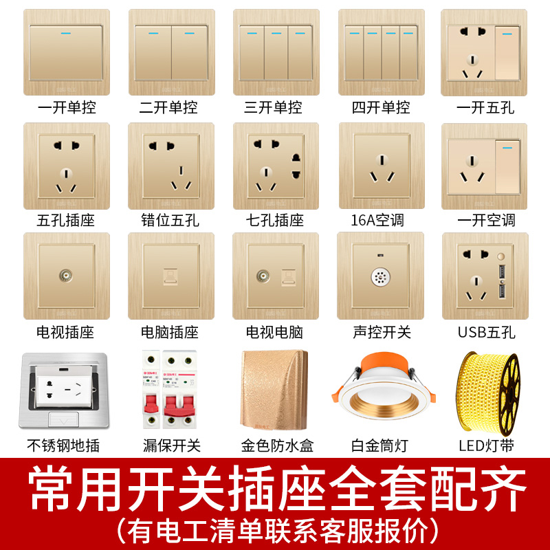 TEP86 type wall switch socket panel champagne gold concealed two-digit information socket computer phone