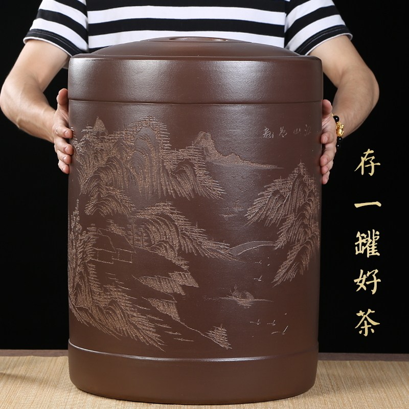 Handmade original mine Purple Sand Tank 5 Jin 15 catty 30 catty of Pu'er Loose Tea Jar Large Number Tea Vat Tea Cake Storage Tank