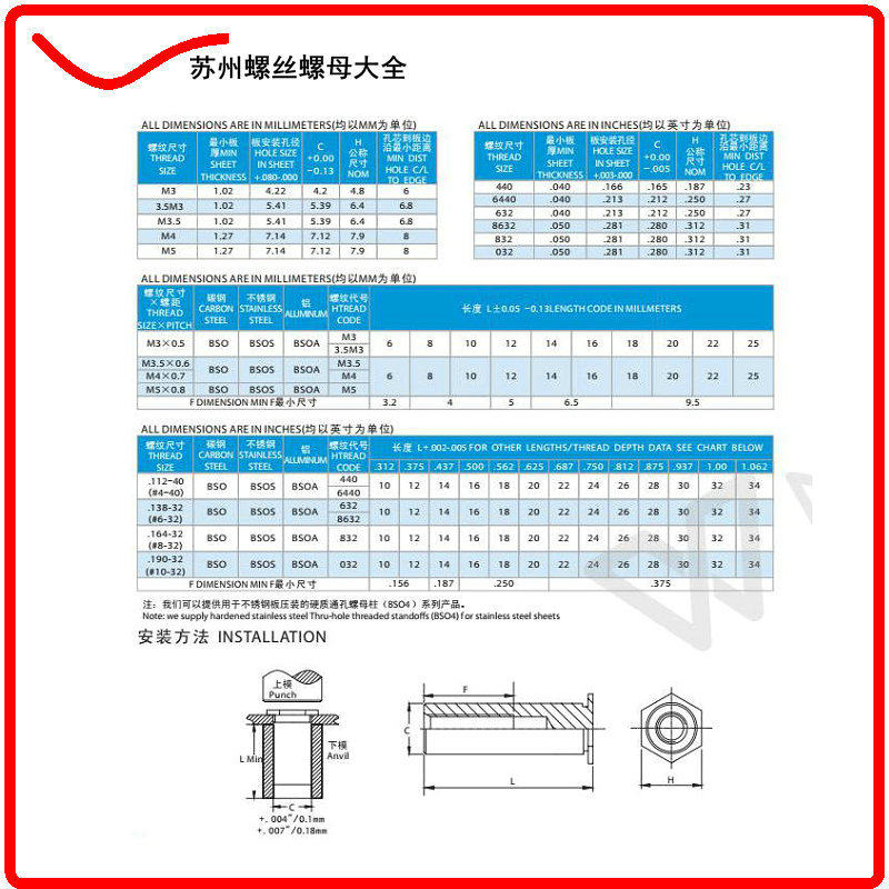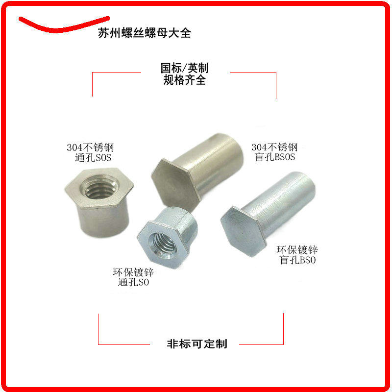416 stainless iron through hole nut column SO4-M3M4M5M6 pressure riveting studs plus hard treatment special pressure stainless steel plate