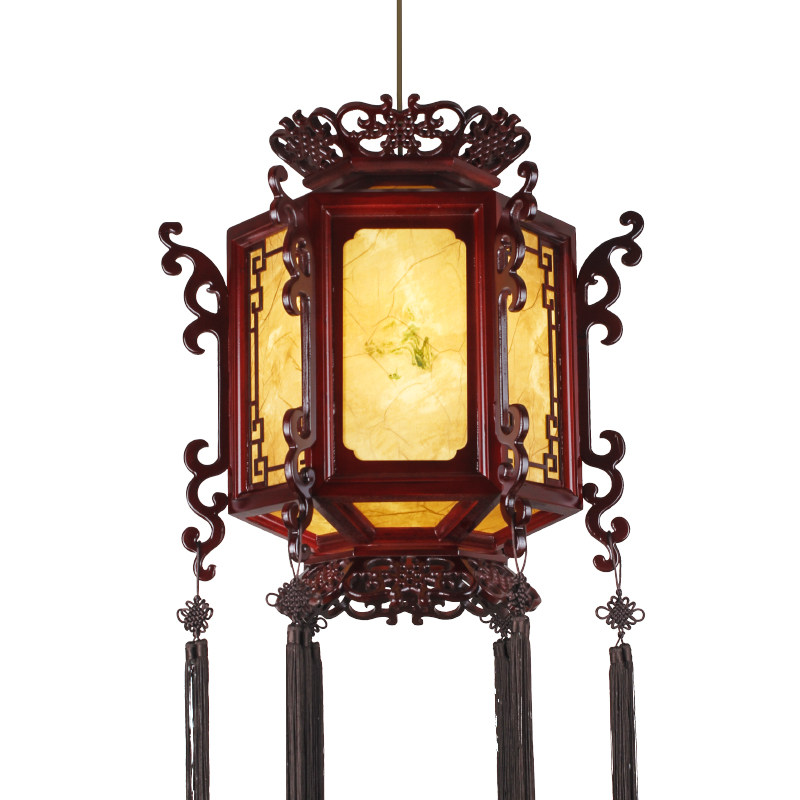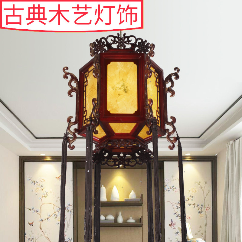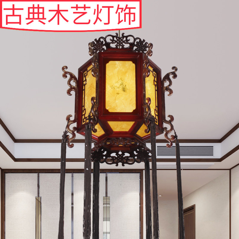 Antique solid wood lamps Hotel hotel entrance Lobby corridor aisle Wooden lanterns Ancient architectural chandelier lamps