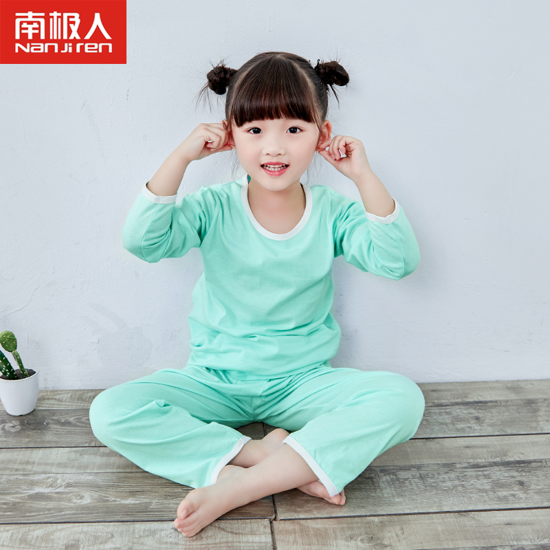 South Pole Children's Pure Cotton Sleeping Spring Summer Thin Air Conditioning Suit Male Girl girl's home Sleeping Suit Pants Set
