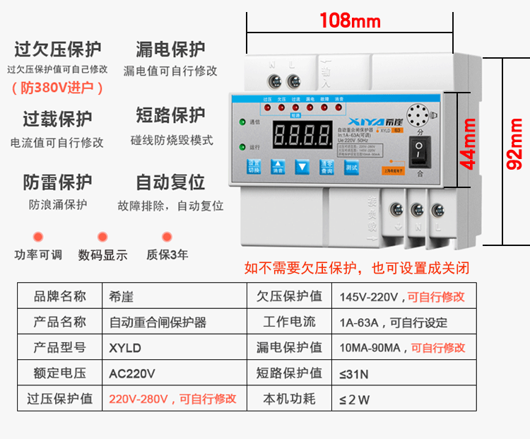 Automatic recloser Leakage protector Self-duplex over-undervoltage current limiting lightning protection switch circuit breaker 220v