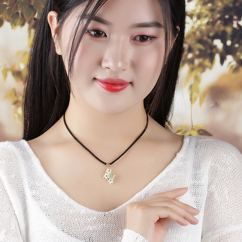 National Wind Lock Bone Chain Female Flowers GREEN BUCKLE RETRO PENDANT PENDANT HANGOVER NECKLACE SHORT PARAGRAPH ACCESSORIES MINIMALIST NECK ORNAMENT
