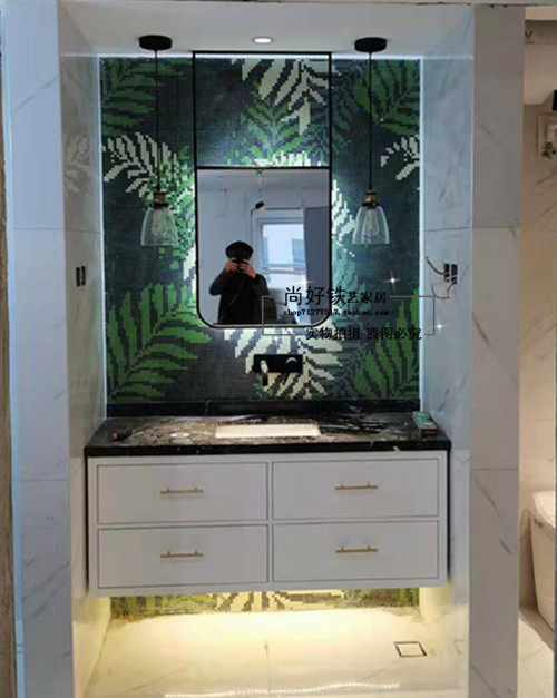 Powder room hanging mirror hanging rectangular touch screen luminous bathroom mirror wall hanging hollow with light hotel homestay mirror