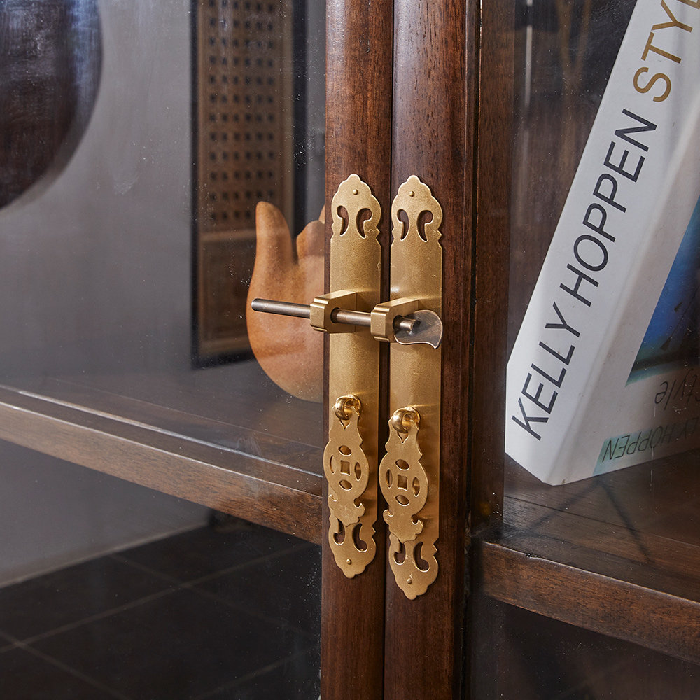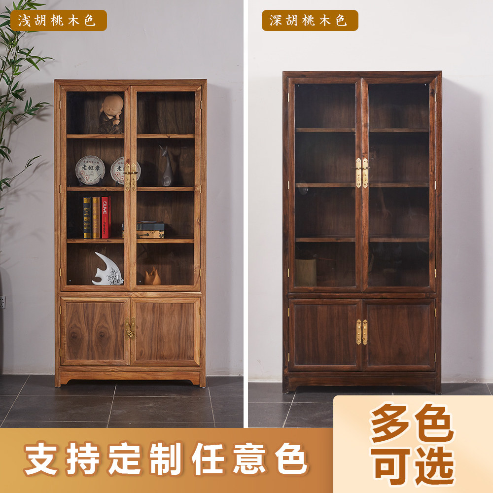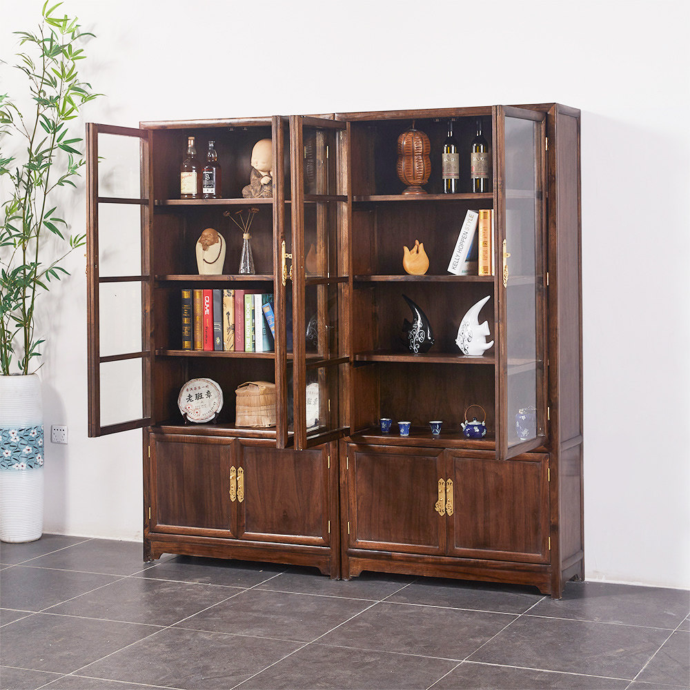Walnut Glass Bookcase New Chinese Bookcase Bookshelf Tea Display Cabinet All Solid Wood Decorative Cabinet Bookcase File Cabinet