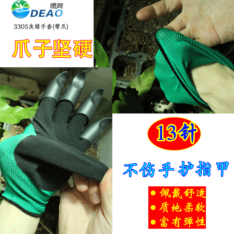 Planting digging labor protection gloves, planting flowers, carrying vegetables, wear-resistant, breathable, loose soil, planing, dipping rubber and claw gloves