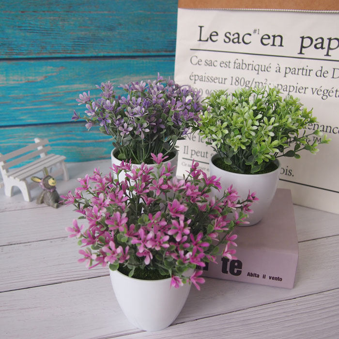Small fresh simulation plants fake flowers and grass potted plastic green plants succulent living room furniture office table decoration ornaments