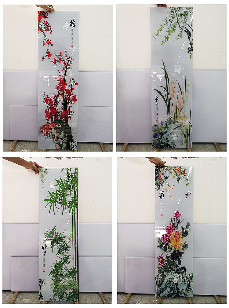 Plum, orchid, bamboo and chrysanthemum 3D art glass ceiling acrylic Chinese porch aisle light-transmitting glass ceiling Suihan Sanyou