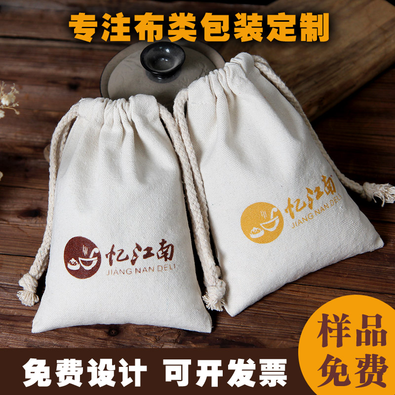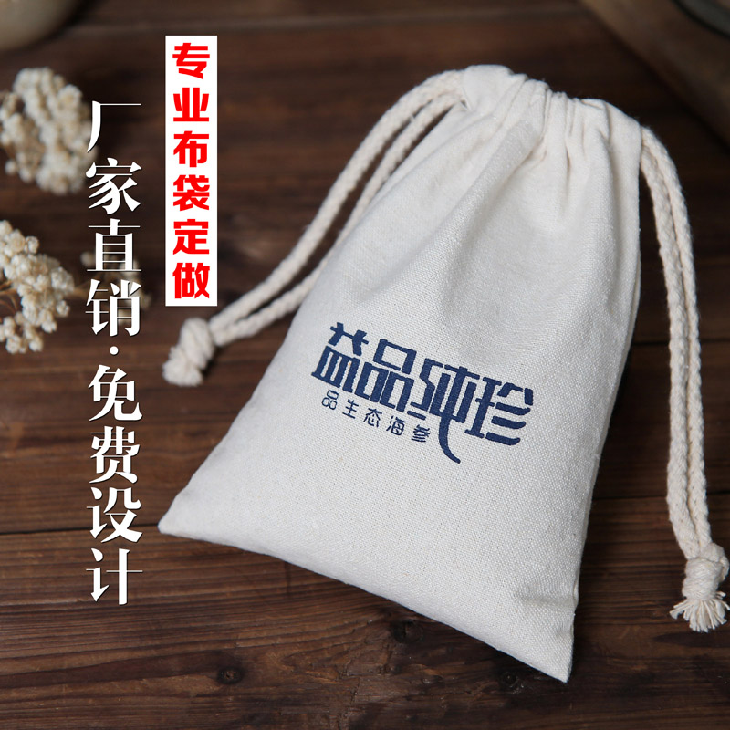 Cloth Bag Beam Pocket Cotton Fabric Bag Pumping Rope Hemp Cloth Bag Flour bag flour bag Wen playing Dried Orange Peel Logo Custom-Taobao