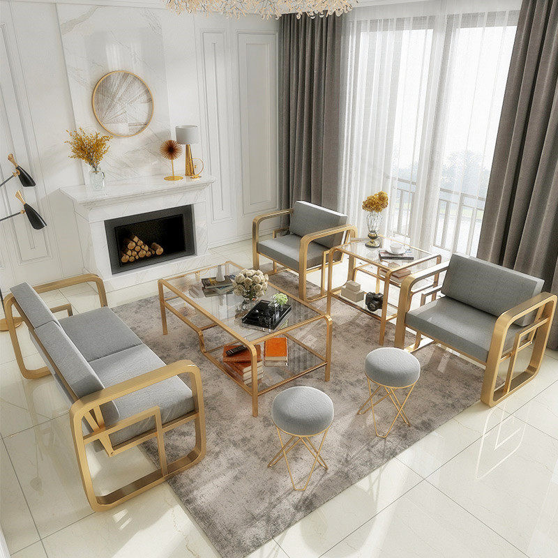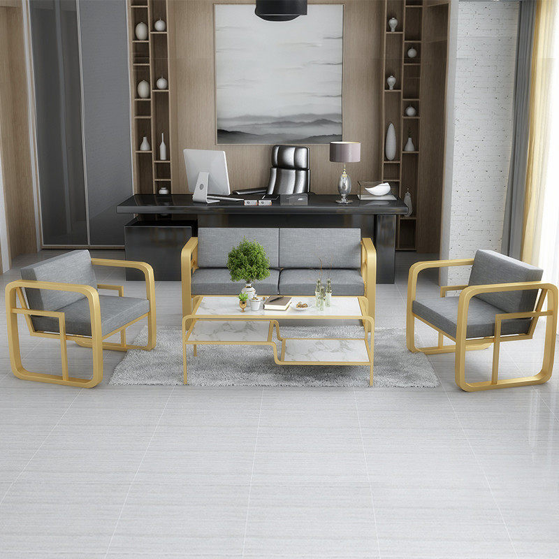 Nordic wrought iron sofa living room business reception guest double coffee table single sofa side table round stool combination set