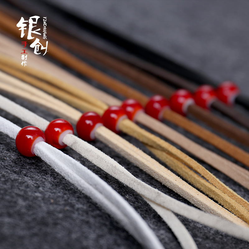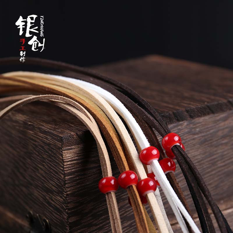 Handmade silver Genesis High bridge goros goros deer leather rope Japanese leather rope DIY glazed beads necklace pendant men's women