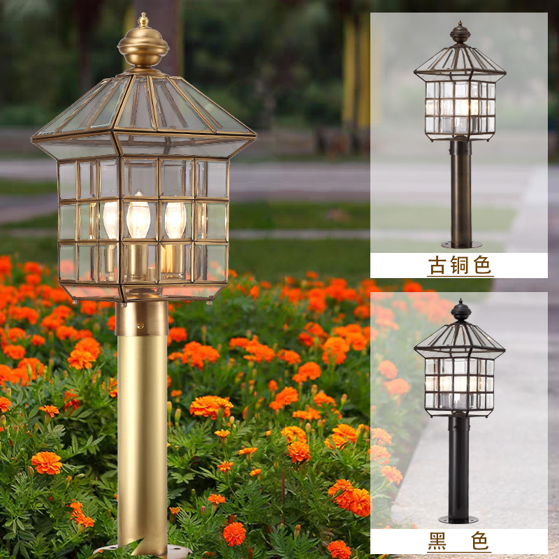 All-copper outdoor lawn lamp villa garden courtyard lamp grass high pole lamp outdoor waterproof landscape wall column head lamp