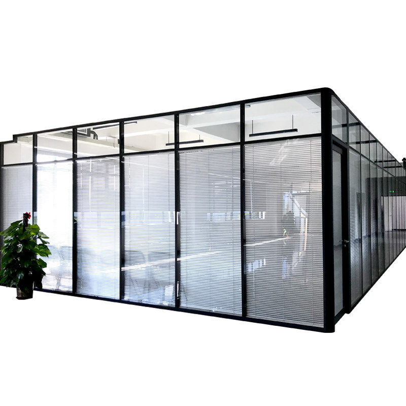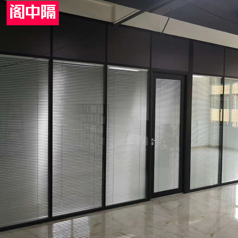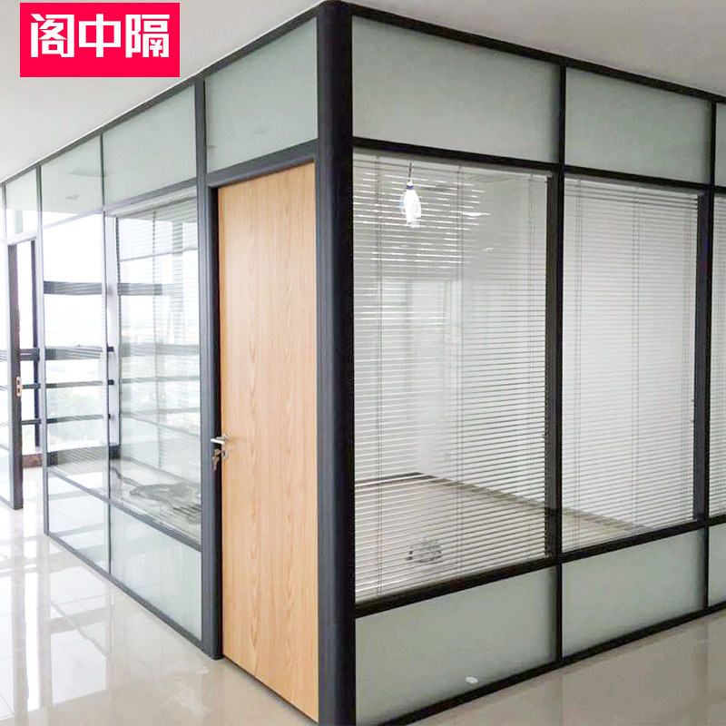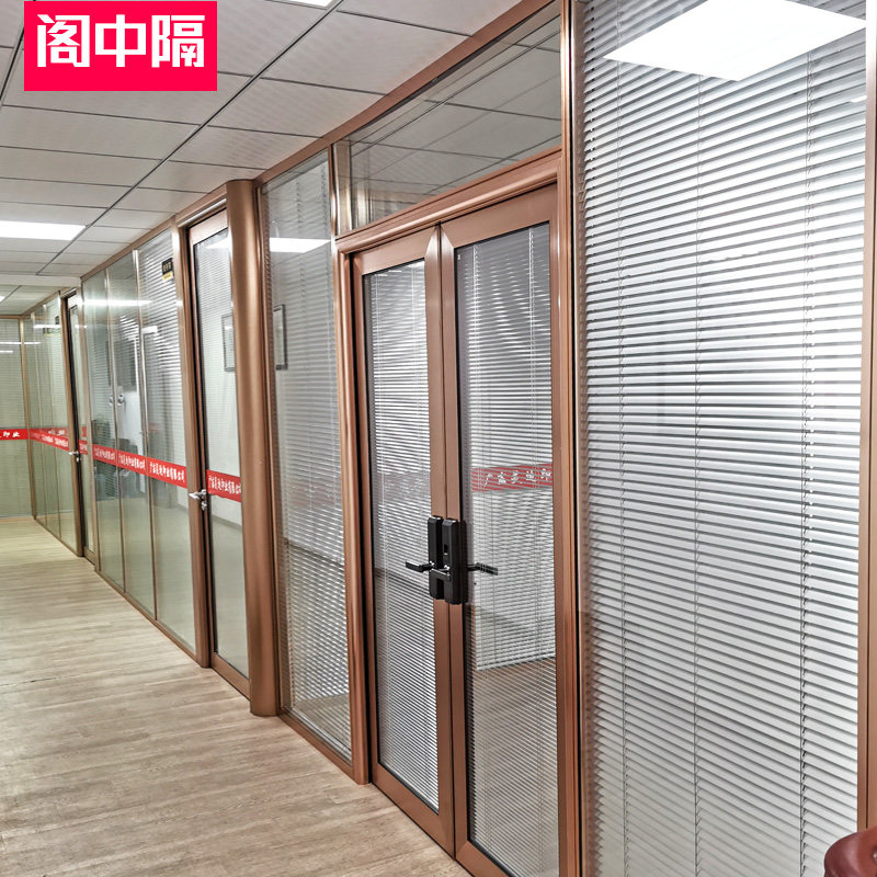 Office glass partition wall Guangdong custom aluminum alloy double glass hollow double tempered high glass door with louvers