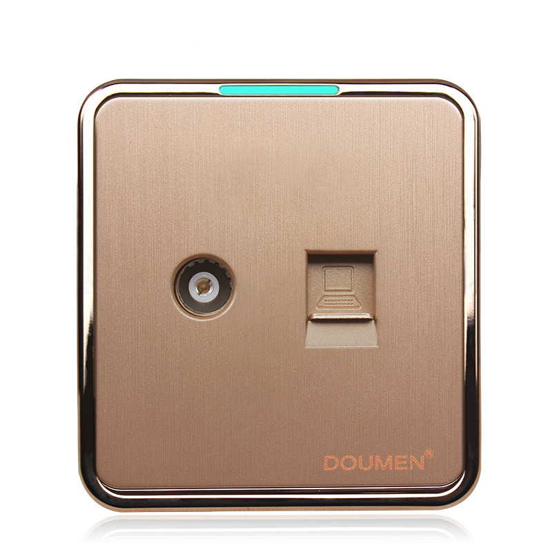 International Electrician 86 Home Hotel Switch Socket Suit Champagne Gold Wire Drawing TV With Network Route Internet TV Computer