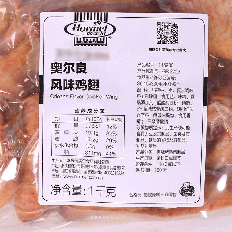 Holmel chicken wings Orleans flavor spicy middle wing root frozen semi-finished products 1kg barbecue wings snack snacks