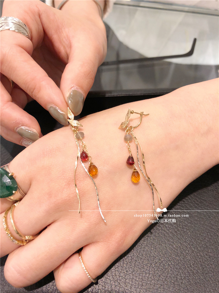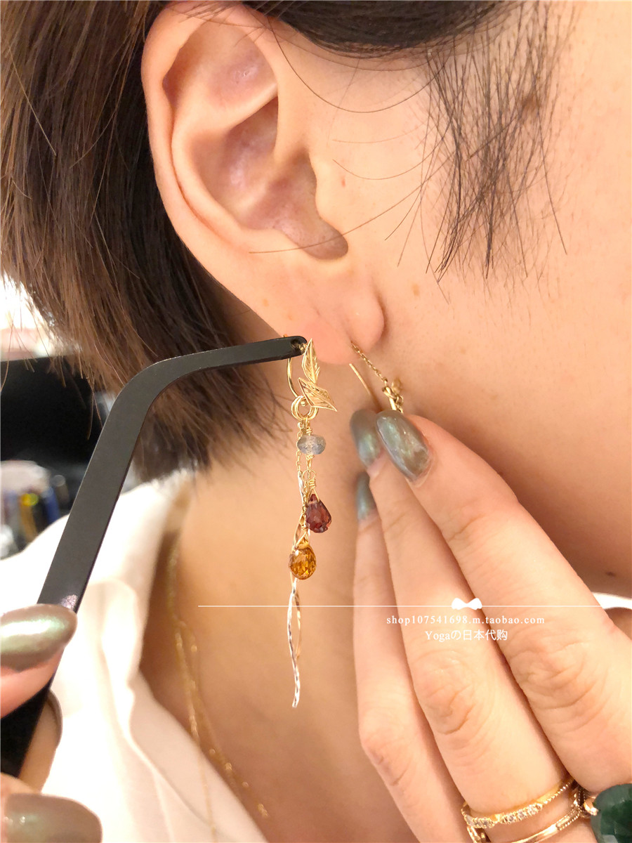 Japan Direct Mail Agete 18 Spring Summer 10k Leaves Ear Pin Matching Eardrops