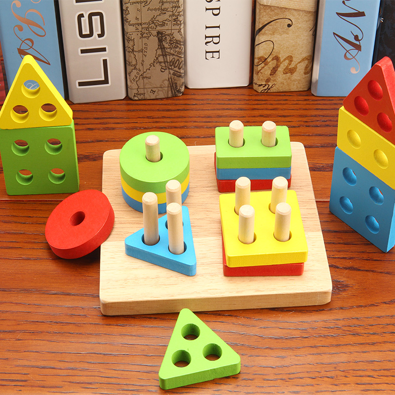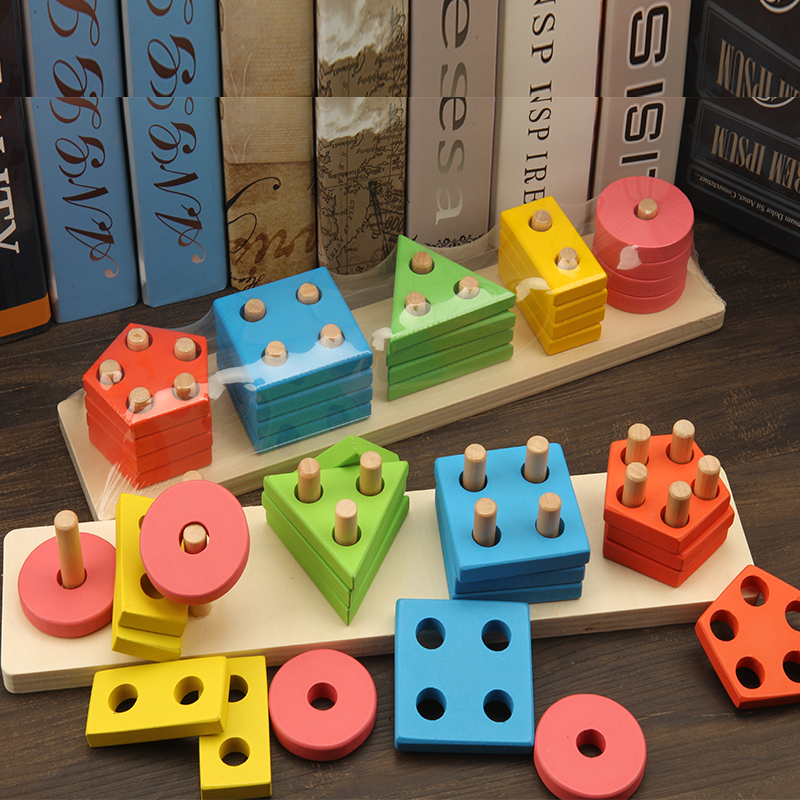 Wooden children's enlightenment early education geometry pairing blocks 2-3-6 years old male and female baby intelligence column toy