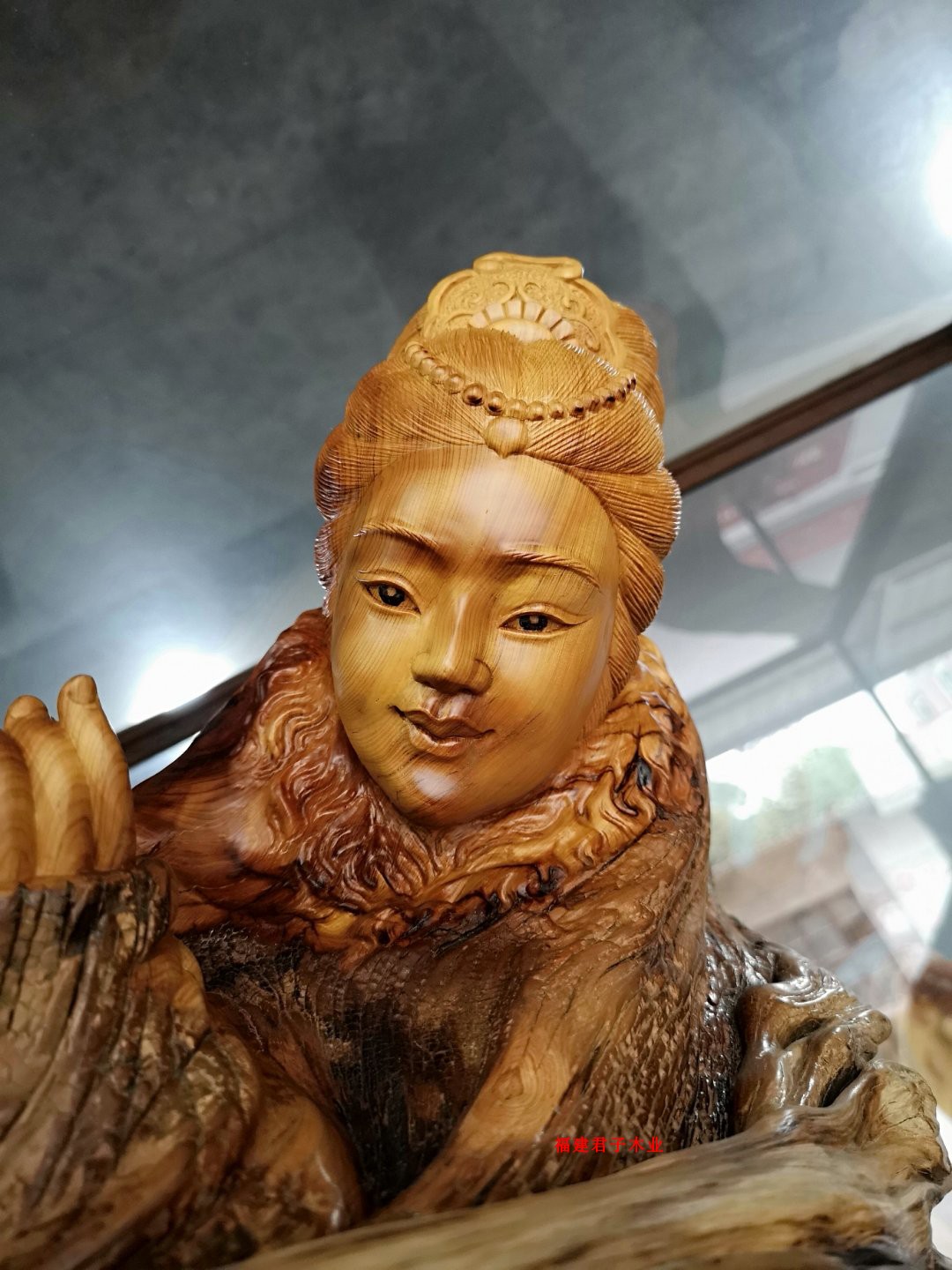 Taihang cliff cypress spinning snow seeking plum Wang Zhaojun Four beauties root carving wood carving ornaments Hotel club opened
