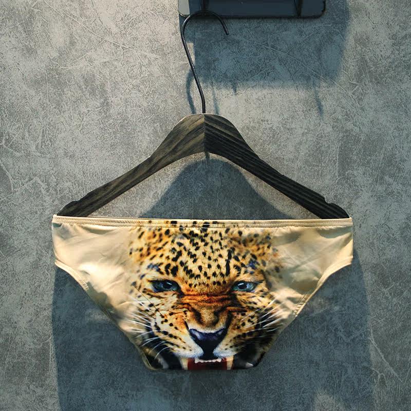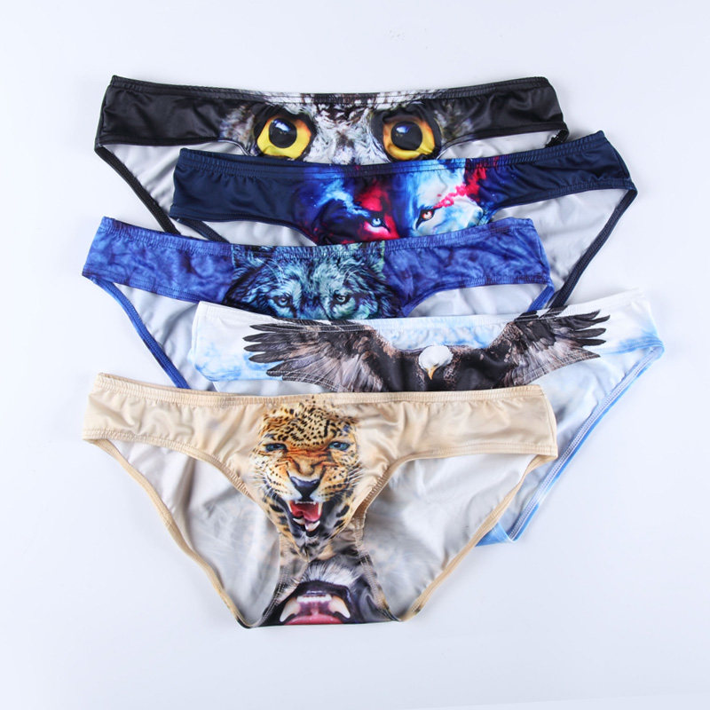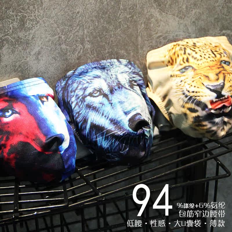 Thin briefs men's low waist tiger wolf owl Bao Wen animal print U convex single layer pocket high elasticity