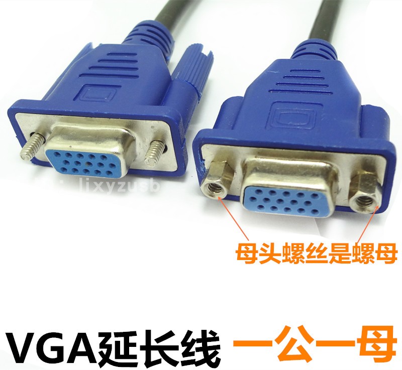 Orange Jersey VGA extension cord nut with nut fixable 50CM display extension cord VGA for holes 0 3 m