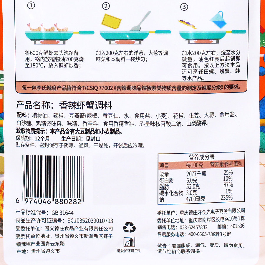 Dezhuang spicy shrimp and crab spicy seasoning 160g*5 bags of spicy crayfish seasoning traditional formula commercial