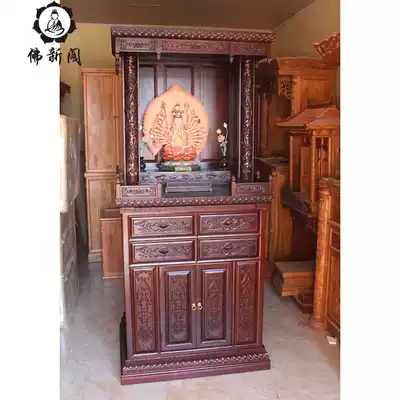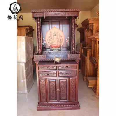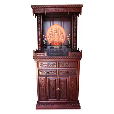 Buddha stand cabinet with door for table for home Buddha platform all solid wood antique Double Dragon lotus carving custom Buddha cabinet
