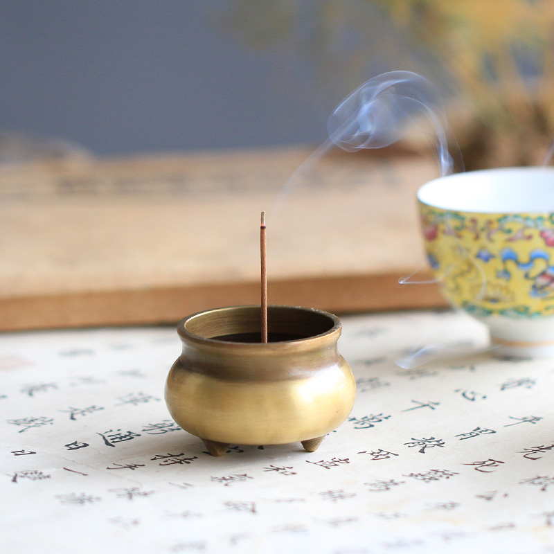 Portable three-legged copper incense burner pure copper Xuande burner home for Buddha trumpet line incense burner pocket incense burner small incense burner