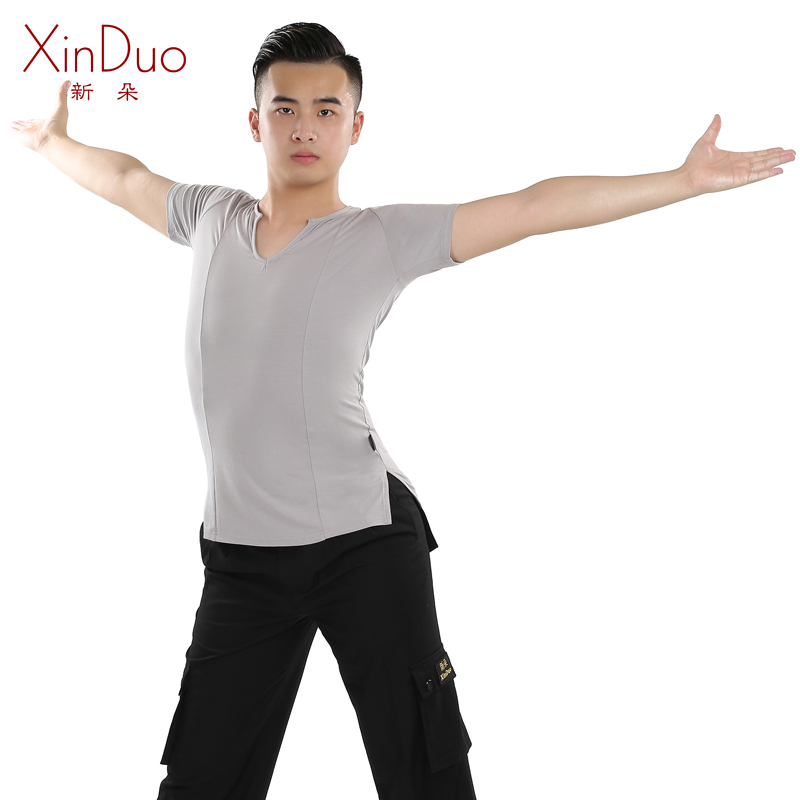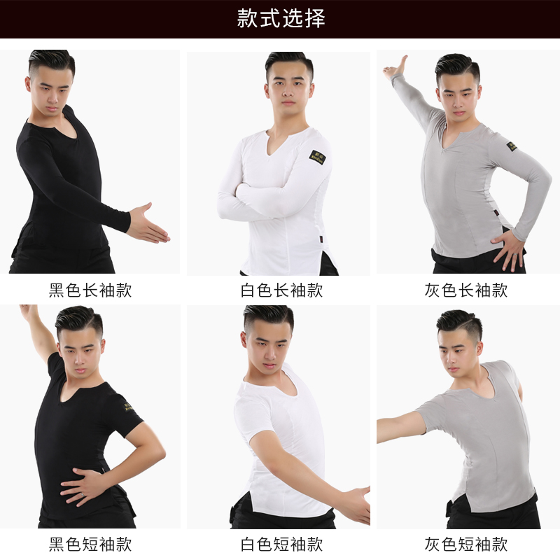 Latin dance blouses men's large V collar T-shirt long sleeve Morden dance social dance national dance dress rehearse dance costumes