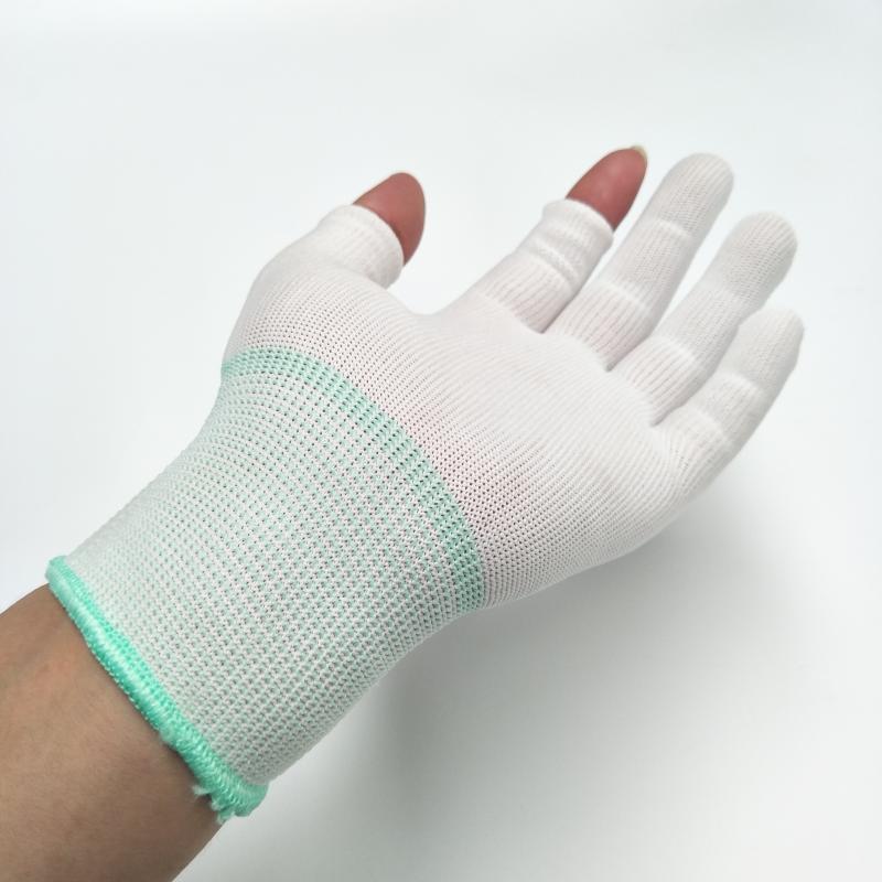 Labor Fidelity Nylon Dust-free Antistatic Broken Finger Gloves Chemical Fiber Male And Female Thin Half Finger White Drive Homework Dew Finger Gloves