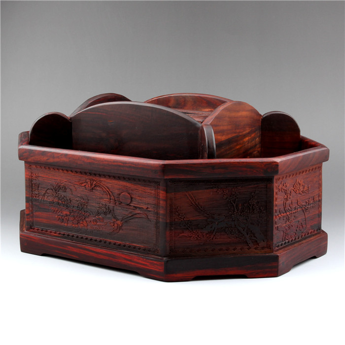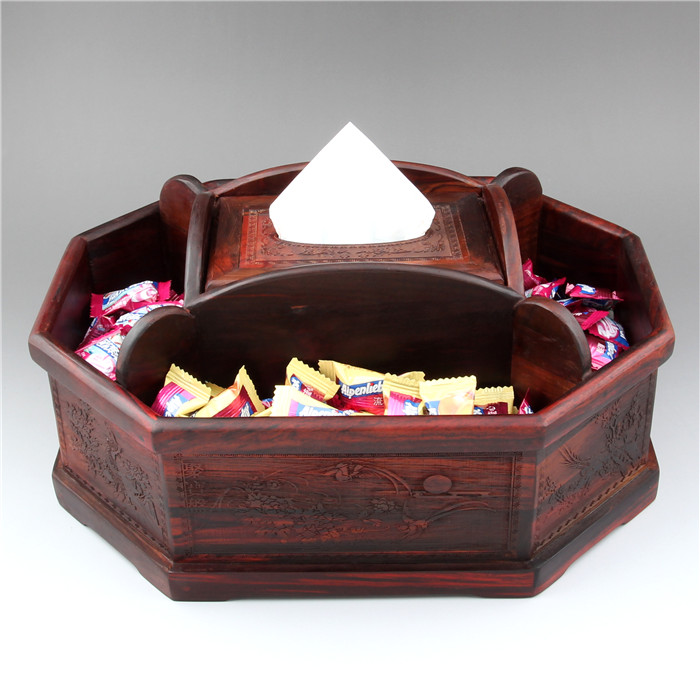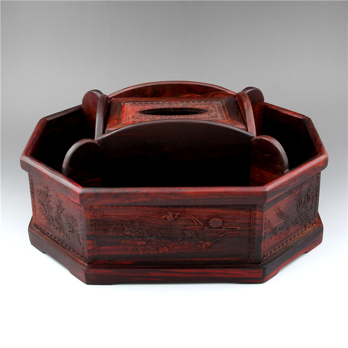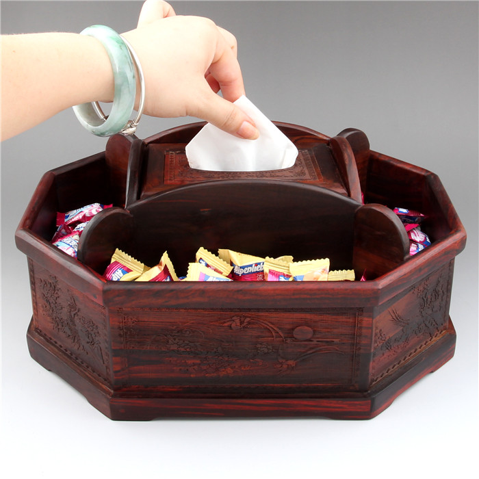 Red rosewood remote control storage box multi-functional mahogany tissue box Chinese dried fruit snacks candy plate living room home