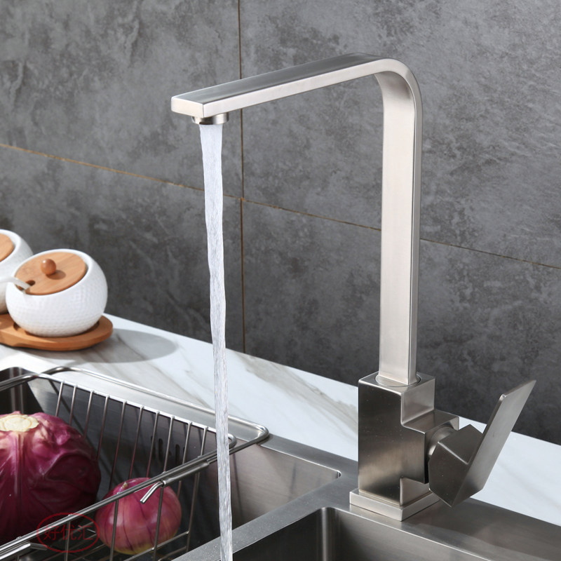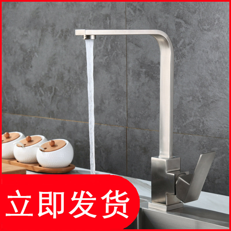 Tap kitchen tap hot and cold washing basin sink tap 304 stainless steel universal square cold head