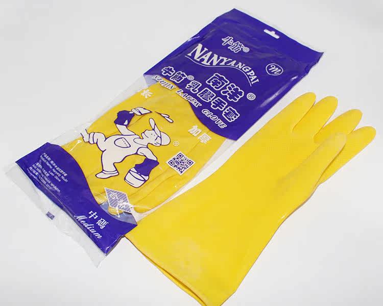 Nanyang latex gloves thickened abrasion-resistant housework cleaning waterproof dishwashing brushed pans gluten plastic kitchen rubber gloves-Taobao