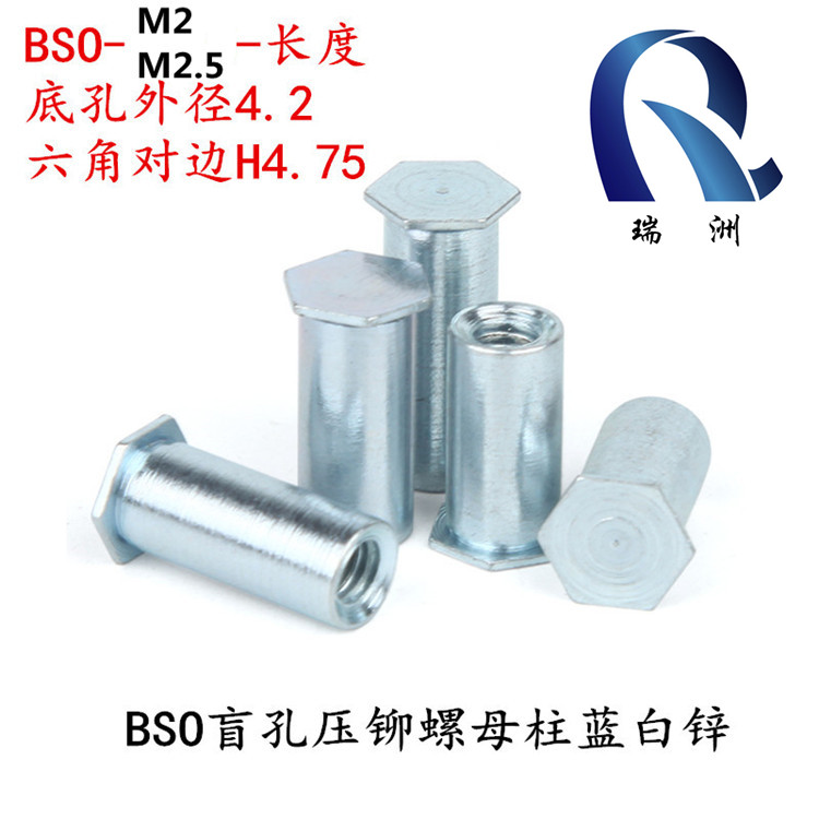 BSO blind hole press riveting nut column M2 M2 5 * 3-25 boreholes 4 2 environmentally friendly blue zinc iron sheet hexagonal pressure riveting column