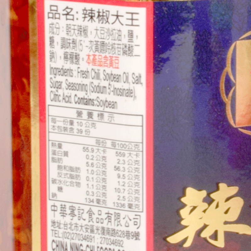 Imported from Taiwan Ningji Pepper King 390 grams Super spicy hot pot base Chaotian pepper sauce