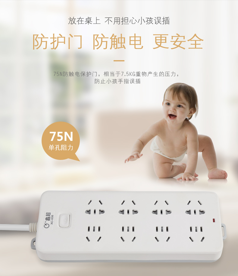 XC008 Power Socket Pin Pin Back Safety Door 2500W 1 square 1 8m 4 8m