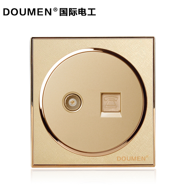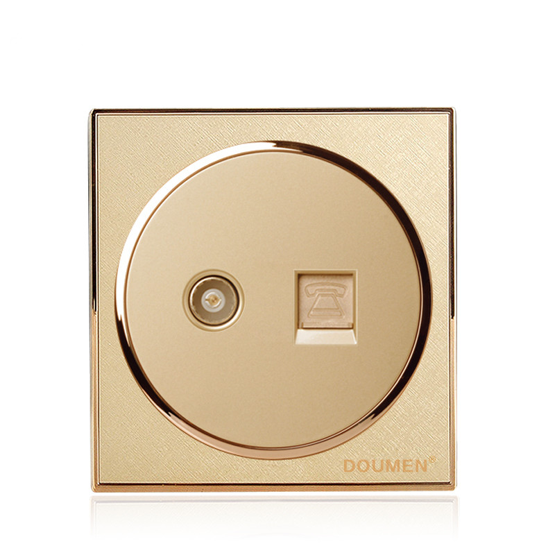 International Electrician 86 Home Big Panel Champagne Golden Round Switch Socket Suit TV Phone Socket