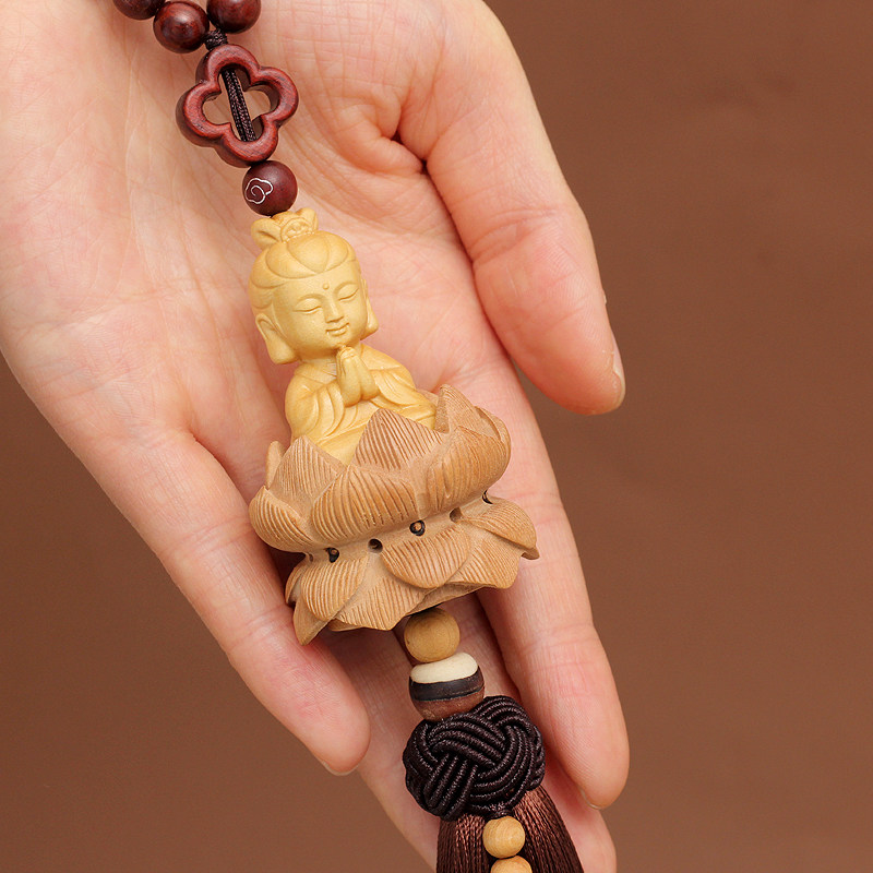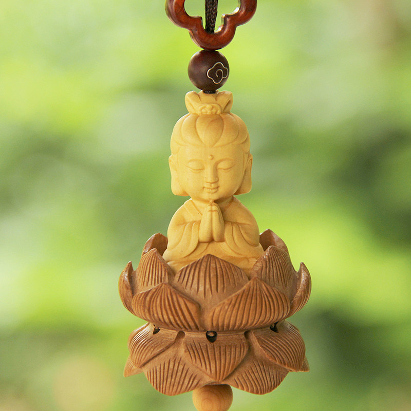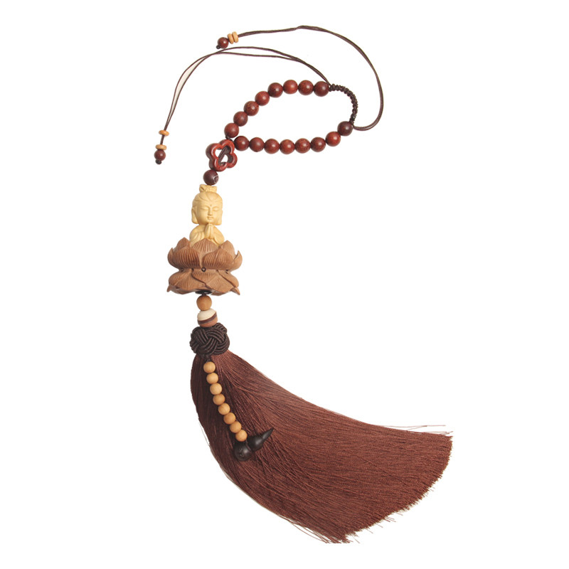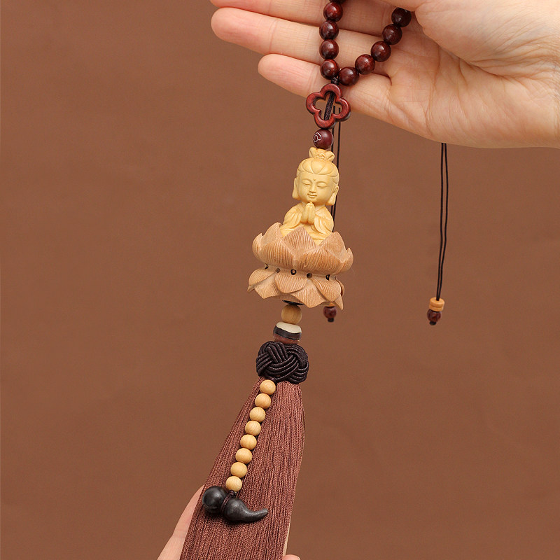 Lotus Guanyin car pendant car interior decoration peach wood Ping An sandalwood gourd high-end men's and women's handmade creative