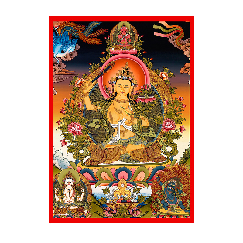 Marriage vertical version of Manjushri Bodhisattva Buddha Statue of Samantabhadra hanging painting set table Home worship high-definition plastic Buddhist Thangka