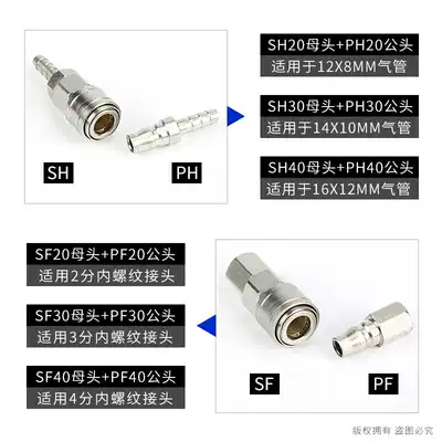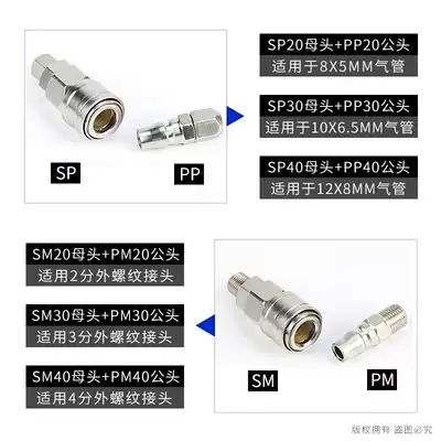 Quick-plug connector Air compressor trachea PP10 self-locking C-type pneumatic quick connector SP20 duct male and female connector 8mm