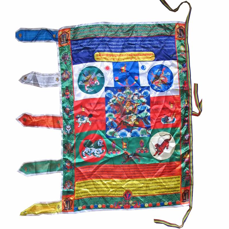 Gesar Wang Battle Banner Scriptwrans Tibetan Buddhism Mizong Longda Tibet Five Color Wind Horse Flag with a good quality of the flag.