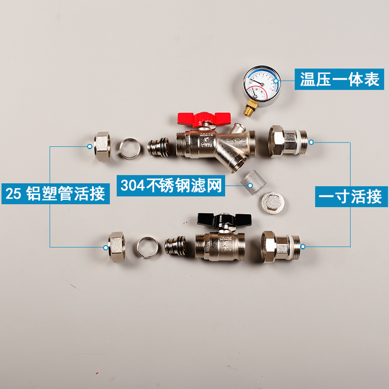 25 aluminum-plastic pipe filter ball valve set Floor heating water distributor Radiator geothermal multi-function with table inlet and return water valve