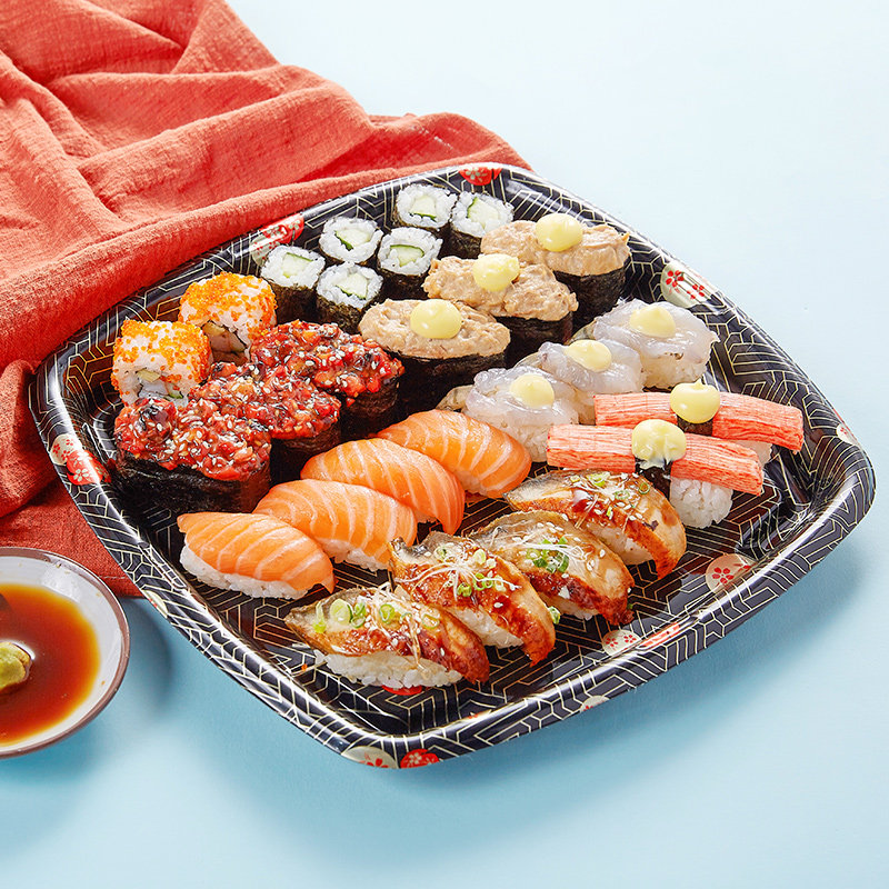 Disposable square plate sushi box platter box high-end packing box square takeaway sushi box from 50 pieces