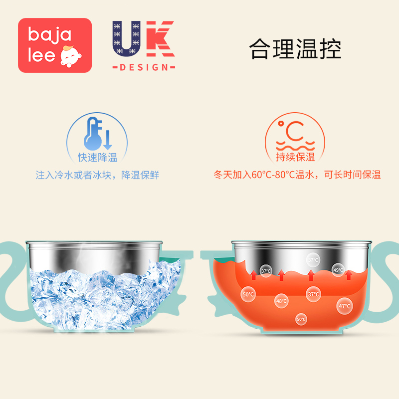 Children's tableware package baby water insulation bowl baby bowl spoon suit auxiliary bowl anti-fall stainless steel sucker bowl