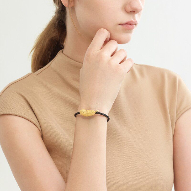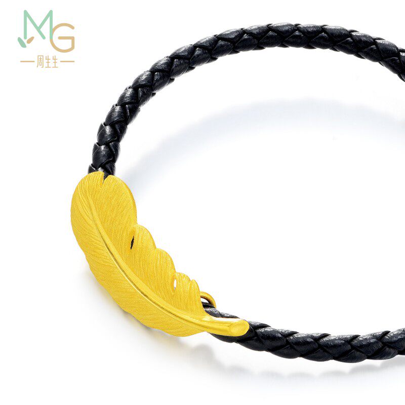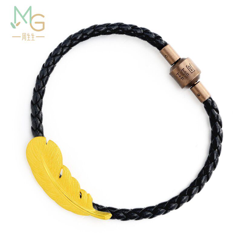 Christmas gift Zhou Shengsheng Feather Gold Bracelet Pure Gold Love Secret Words Gold Feather Bracelet Couple 9739B