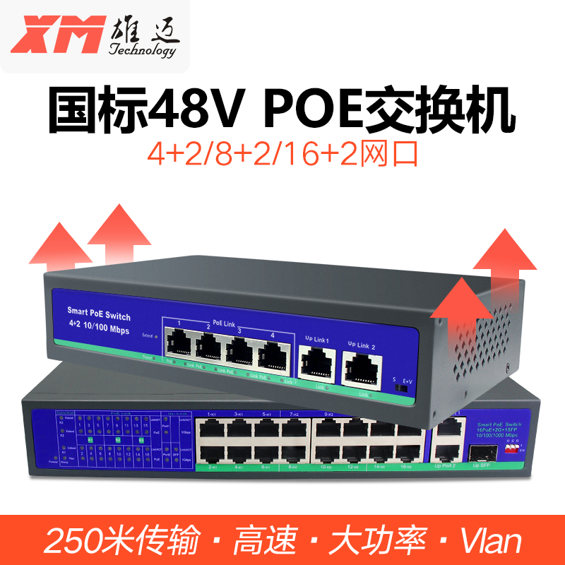 4 2 8 2 10 ports 8-way standard 48V built-in power POE powered switch camera transfer 250 m