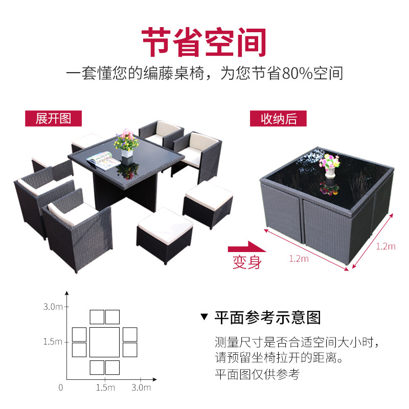 Balcony table and chair rattan chair five-piece combination terrace courtyard outdoor hotel leisure creative furniture outdoor table and chair