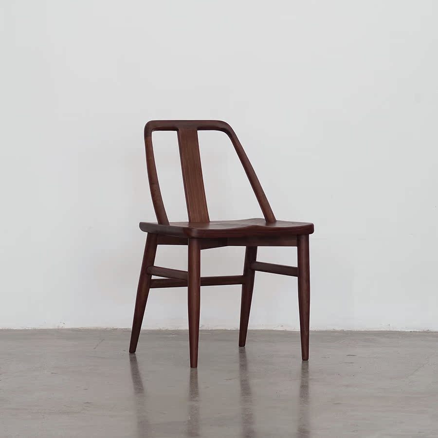 Ripple Chair Black Walnut Dining Chair Back Chair Retro Casual New Chinese Style Solid Wood Modern Simple Suyuan Furniture